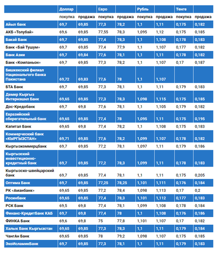 Валюталардын коммерциялык банктардагы наркы