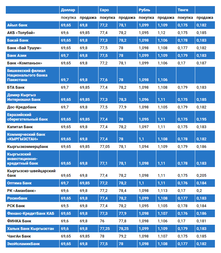 Валюталардын коммерциялык банктардагы бүгүнкү наркы
