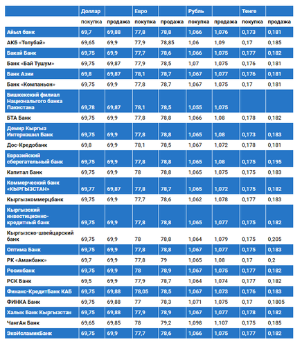 Валюталардын коммерциялык банктардагы бүгүнкү наркы
