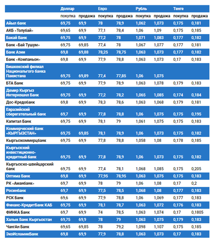 Валюталардын коммерциялык банктардагы бүгүнкү наркы