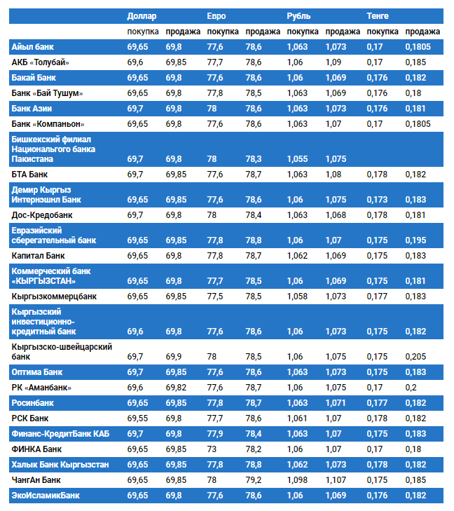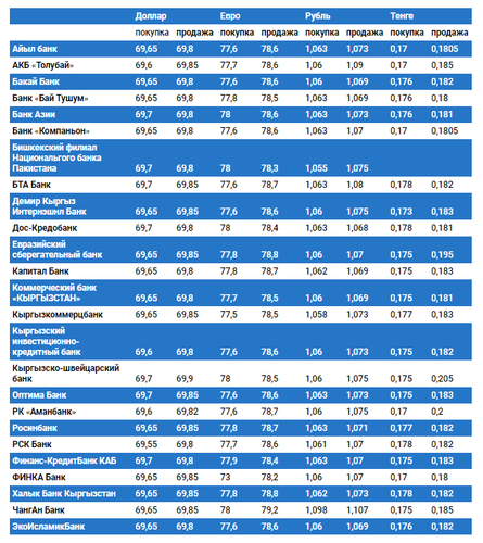 Валюталардын коммерциялык банктардагы бүгүнкү наркы