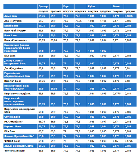 Валюталардын коммерциялык банктардагы бүгүнкү наркы