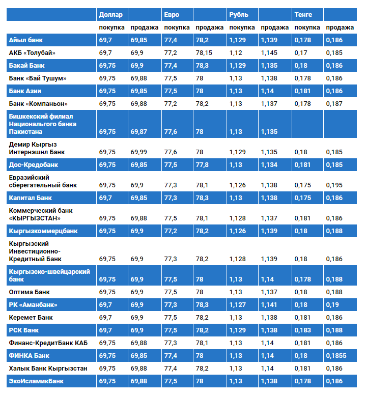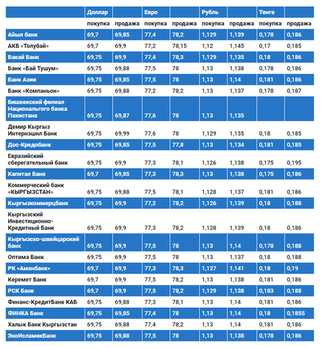 Валюталардын коммерциялык банктардагы бүгүнкү наркы
