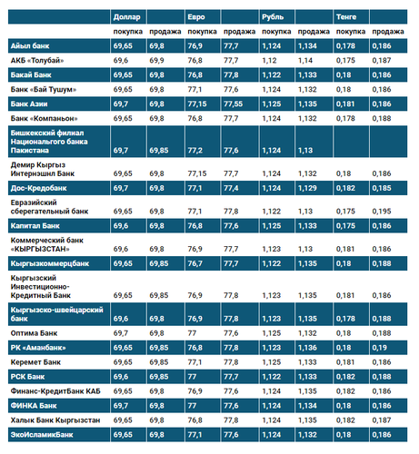 Валюталардын коммерциялык банктардагы бүгүнкү наркы