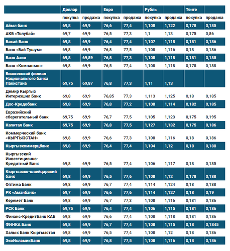 Валюталардын коммерциялык банктардагы бүгүнкү наркы