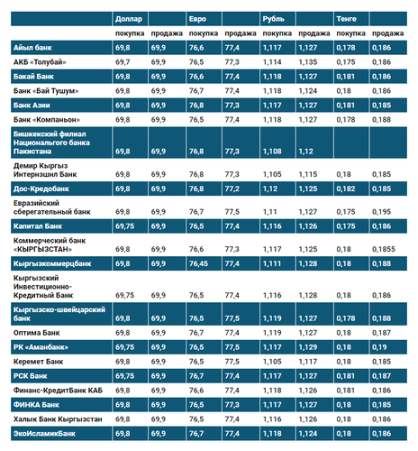 Валюталардын коммерциялык банктардагы бүгүнкү наркы