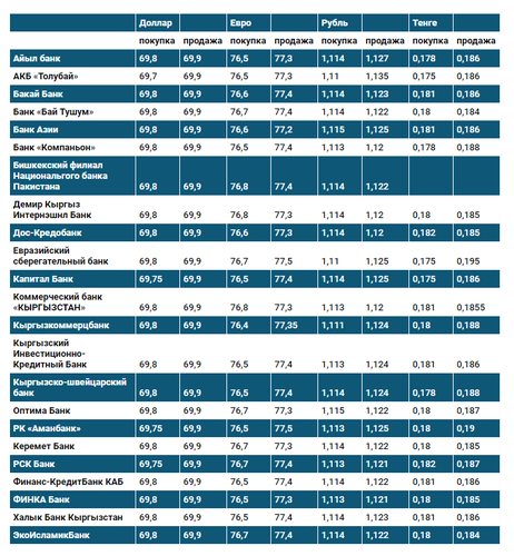 Валюталардын коммерциялык банктардагы бүгүнкү наркы