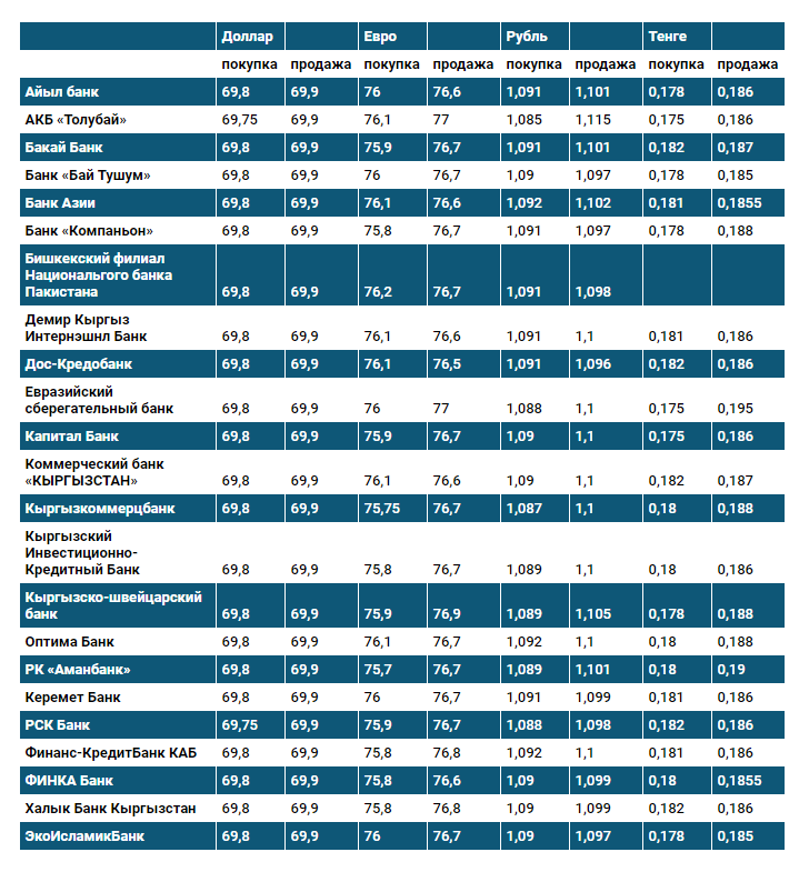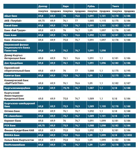 Валюталардын коммерциялык банктардагы наркы
