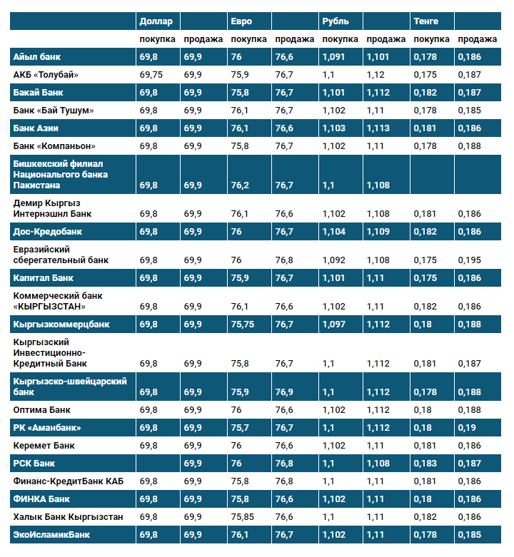 Валюталардын коммерциялык банктардагы наркы