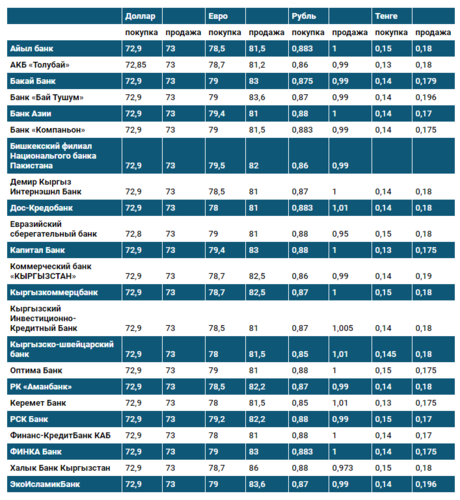 Валюталардын коммерциялык банктардагы наркы