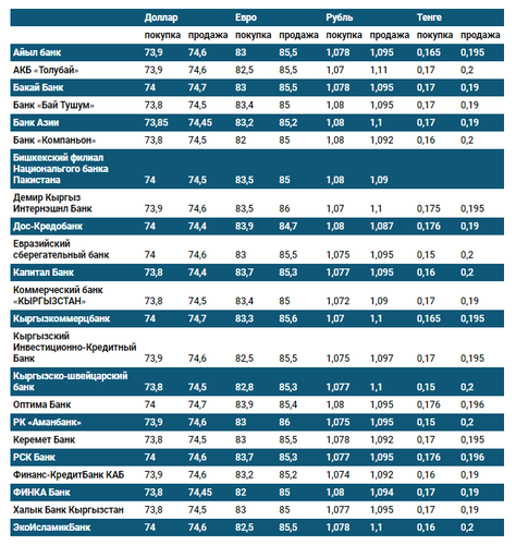 Валюталардын коммерциялык банктардагы наркы