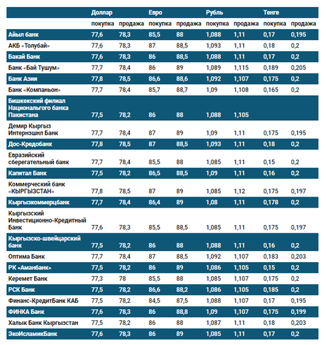 Валюталардын коммерциялык банктардагы бүгүнкү наркы