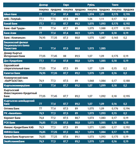 Валюталардын коммерциялык банктардагы наркы
