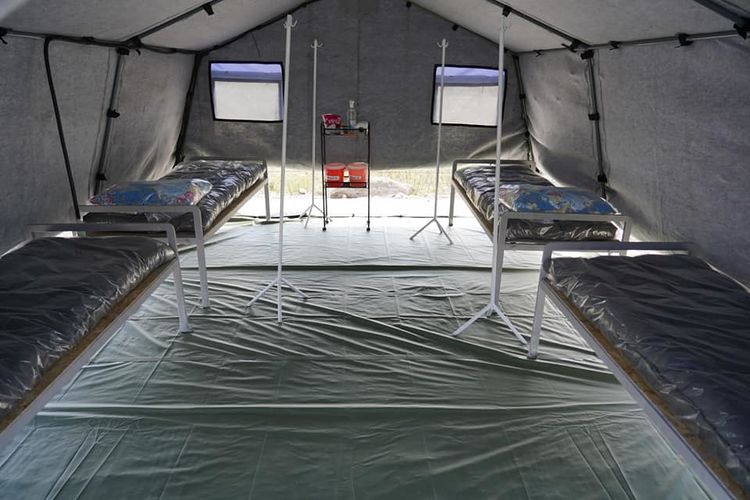 Белгилүү болгондой, оорукана 13 чатырдан турат жана анда 50 керебет орнотулган. Ооруканада кабыл алуу бөлмөсү, ординанттардын кабинети, күтүү залы, жуунучу жай, даараткана, дарыкана жана видеобайкоо камералары бар. Алардын бардыгы Санитардык-эпидемиологиялык көзөмөлдүн талаптарына ылайык жайгаштырылган. Электр энергиясы аварияга учураса 50 кВт электр генератору иштетилет.