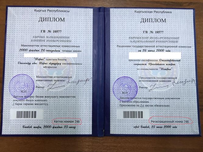 Төрөбай Зулпукаровдун № 748 каттоо номериндеги диплому Чолпон Усубалиева аттуу бүтүрүүчүгө таандык болуп чыккан.