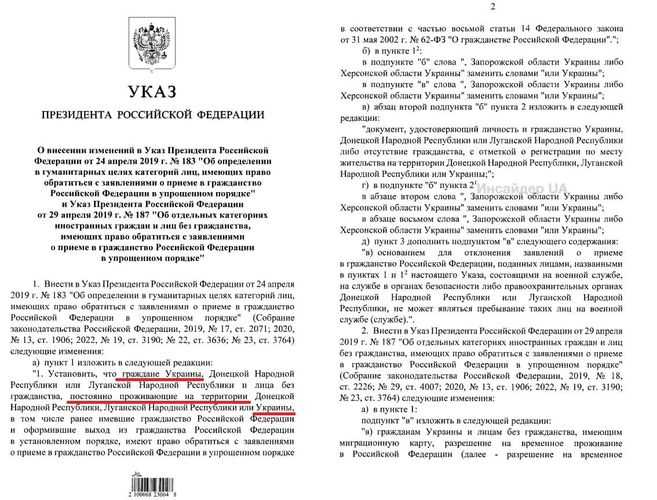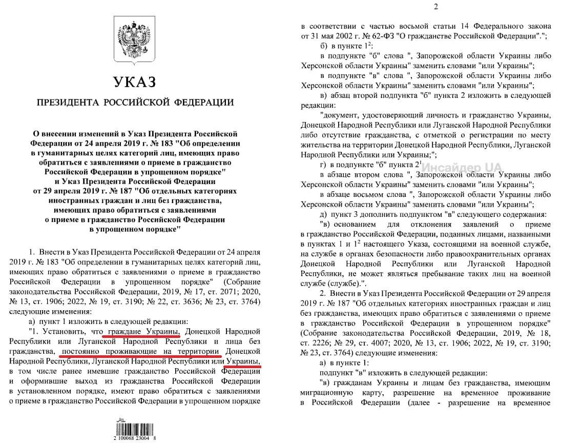 Владимир Путин украиналыктарга Россиянын жарандыгын берүү жол-жобосун жеңилдетүү боюнча буйрукка кол койду. Буга чейин Луганск, Донец, Херсон жана Запорожье аймактарынын тургундары гана орус жарандыгын оңой жол менен ала алышмак.