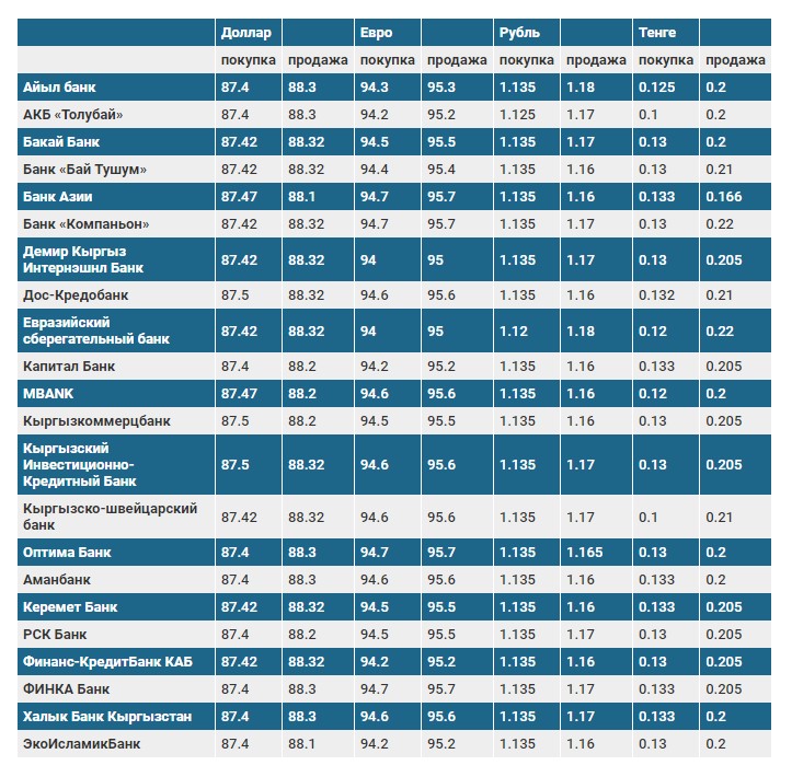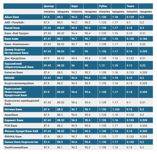 Валюталардын коммерциялык банктардагы бүгүнкү наркы