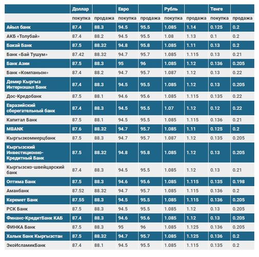 Валюталардын коммерциялык банктардагы бүгүнкү наркы