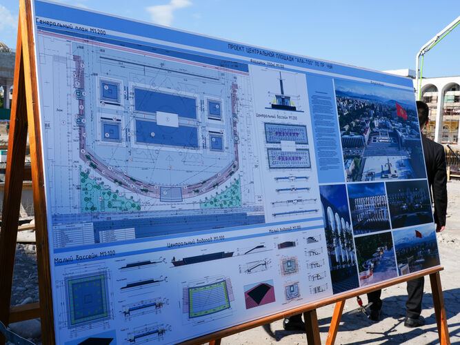 Маалыматка ылайык, аянтка заманбап фонтан комплекстери орнотулат, ошондой эле 100 метр бийиктиктеги флагшток орнотуу иштери жүрүп жатат.
