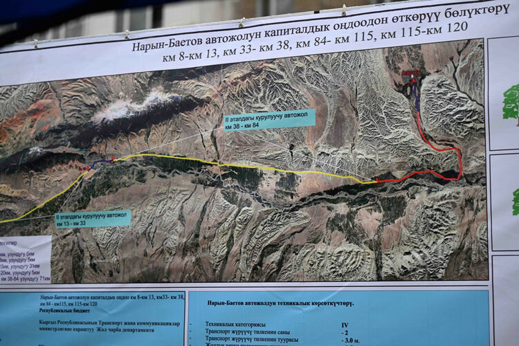 Маселен, Ленин көчөсүнүн узундугу 9,5 чакырым туурасы 24 метрди, Ж. Шералиев көчөсүнүн узундугу 2,2 чакырым туурасы 10,5 метрди түзгөн жолдо жасалып жаткан жумуштарга жолду кеңейтүү, асфальт төшөө, жолго жолтоо болгон объекттерди алуу иштери кирет. Ошондой эле узундугу 13 чакырым болгон жалпы 39 көчөгө асфальт төшөө долбоорун жасатуу жумуштары жүрүүдө. Ал эми, жалпы узундугу 84-120 чакырымды түзгөн Нарын-Баетов унаа жолунда да оңдоо иштери кызуу жүрүүдө.