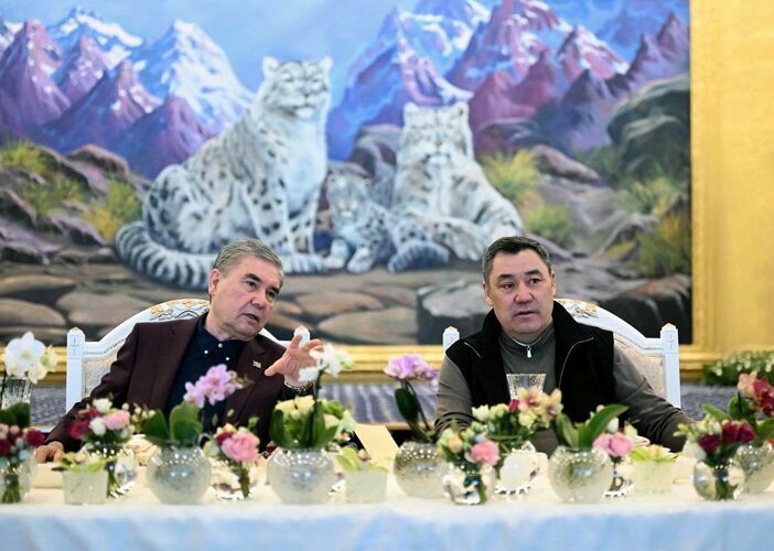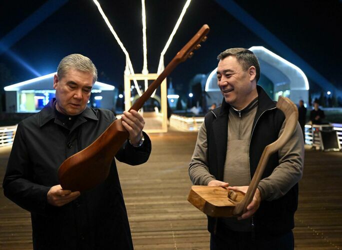 Президент Садыр Жапаров менен Түркмөнстандын Халк Маслахатынын төрагасы Гурбангулы Бердымухамедов бүгүн, 22-апрелде анын Кыргызстанга болгон иш сапарынын алкагында Чолпон-Ата шаарындагы «Рух-Ордо» маданий борборуна барышты.