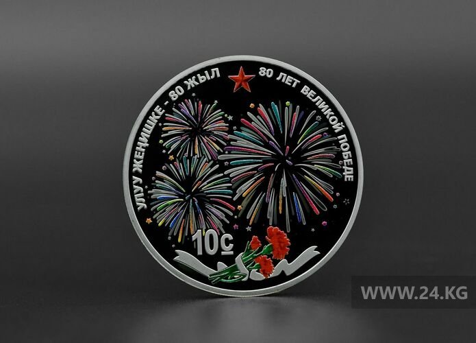 Кыргызстанда Улуу Ата Мекендик согуштагы Жеңиштин 80 жылдыгына карата 2025-жылдын 28-апрелинен тартып «Тарыхый окуялар» сериясындагы «Улуу Жеңишке — 80 жыл» күмүш коллекциялык монетасы жүгүртүүгө чыгарылды. Бул тууралуу Улуттук банктан билдиришти.