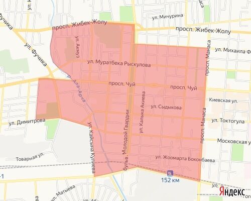 Жаш Гвардия бульвары — темир жол линиясы — Фрунзе көчөсү — Манас проспектиси;
