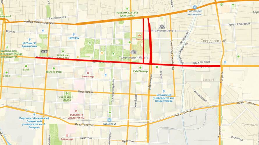Чүй проспектиси (Курманжан Датка көчөсүнөн Турусбеков көчөсүнө чейин).