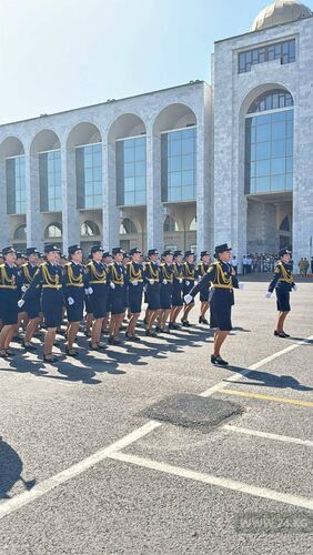 Алгач президент — Куралдуу күчтөрдүн Башкы колбашчысы Садыр Жапаров Жеңиш аянтында митинг-реквиемге катышты. Анда мамлекет башчысы Өчпөс отко гүлчамбар коюп, Улуу Ата Мекендик согушта каза тапкандарды бир мүнөт эскерди.
