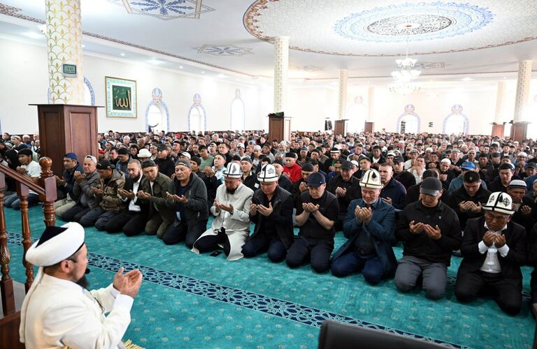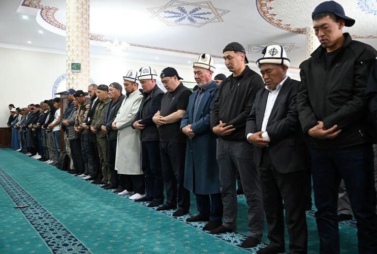Мамлекет башчы мечиттин жамааты менен бирге майрамдык намаз окуду