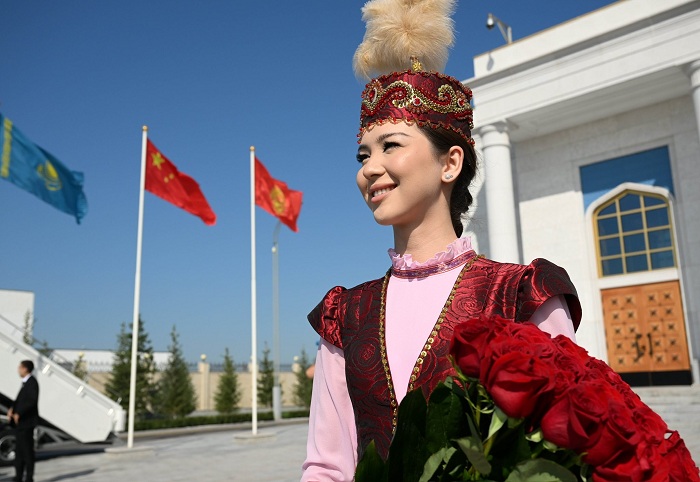 Аэропорттун флагштокторуна Борбор Азия мамлекеттеринин жана Кытайдын мамлекеттик туулары илинди, килем төшөлүп, ардактуу кароол тизилди.