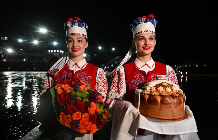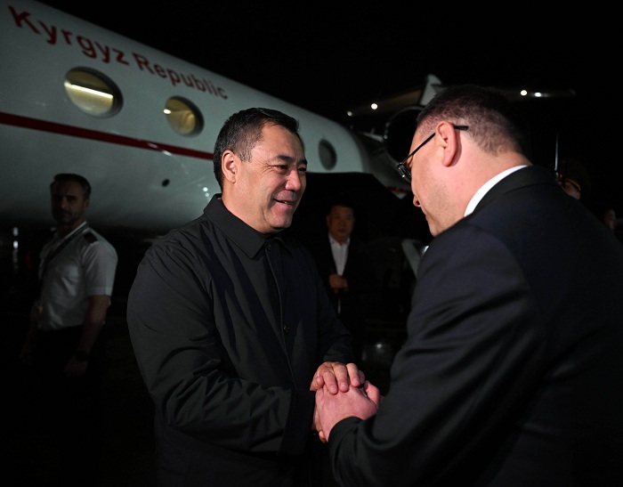 Президент Садыр Жапаровду Беларусь Республикасынын Премьер-министринин орун басары Виктор Каранкевич жана башка расмий адамдар тосуп алышты.