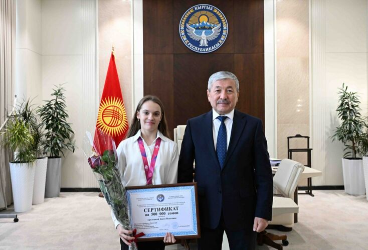Ошондой эле министрлер кабинетинин төрагасы Адылбек Касымалиев көркөм гимнастика боюнча өспүрүмдөр арасында дүйнө чемпиону Злата Аркатова жана анын машыктыруучуларына акчалай сыйлык сертификаттарды тапшырды.