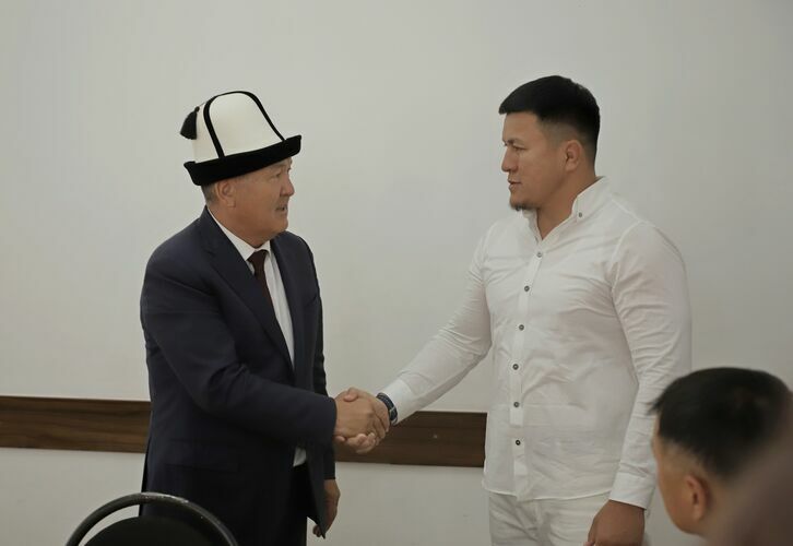 Фото Ош мэриясынын басма сөз кызматы. Мэр Жеңишбек Токторбаев жана Семетей Козуев