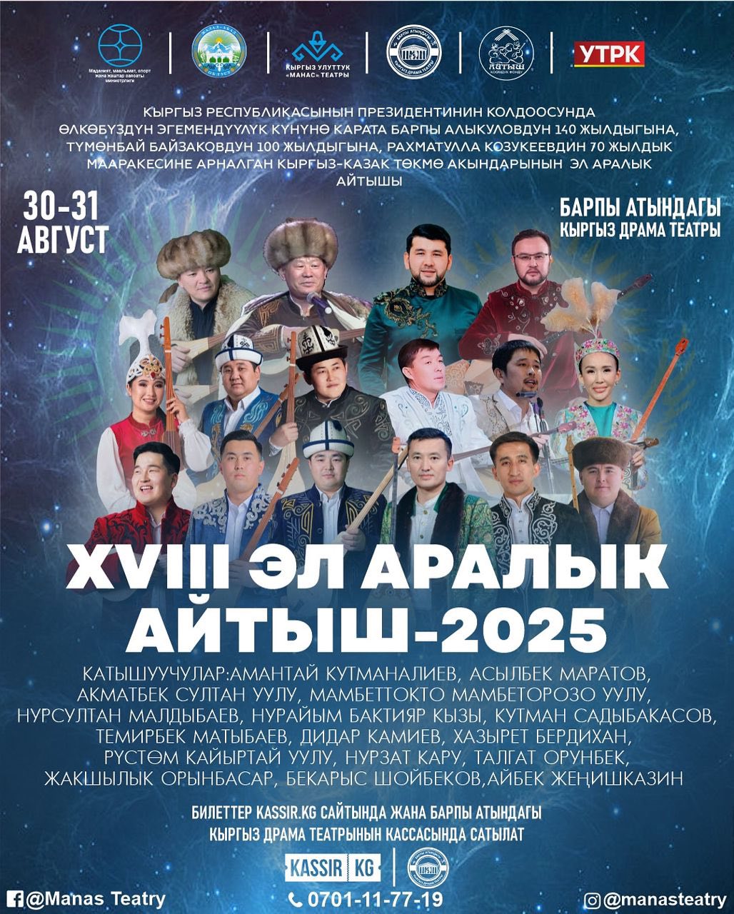 27-август, саат 17:00 — Токтогул шаары, Маданият үйү;