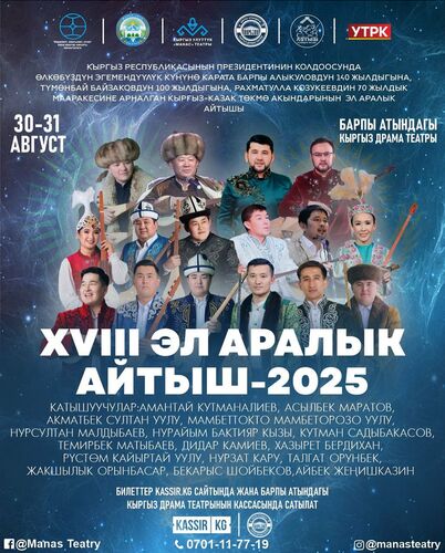 30-31-август күндөрү КР президентинин колдоосунда Эгемендүүлүк күнүнүн урматына кыргыз-казак төкмө акындарынын XVIII эл аралык айтышы өтөт. Бул тууралуу Маданият, маалымат жана жаштар саясаты министрлигинен билдиришти.