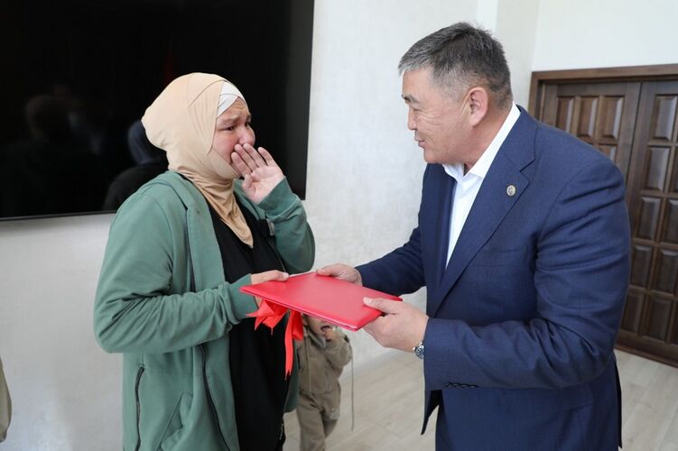 УКМКнын төрагасы Камчыбек Ташиев көп балалуу үй-бүлөгө Бишкектен эки бөлмөлүү батир белек кылды. Бул тууралуу Мамлекеттик комитеттин басма сөз борбору билдирди.