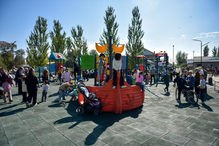 Аймак толугу менен көрктөндүрүлүп, автоматтык сугат системасы, заманбап жарыктандыруу орнотулган. Мындан сырткары, тургундардын коопсуздугу үчүн сейил бактын айланасына видеокөзөмөл камералары коюлган.
