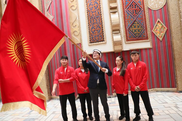 Министрлер кабинетинин басма сөз кызматы билдиргендей, салтанатка министрлер кабинетинин төрагасынын орун басары Эдил Байсалов катышып, команданын капитаны Улан Майрамбеков менен Доминика Чернецкаяга мамлекеттик тууну расмий түрдө тапшырды.