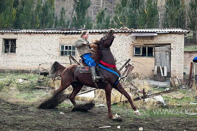 «Мен Орловкадан болом. Бул жерде иштейм, ушул жерде жашайм. Убактымдын көбүн аттарым менен өткөрөм. Аларсыз абасыз калгандай болом», — дейт кыз.