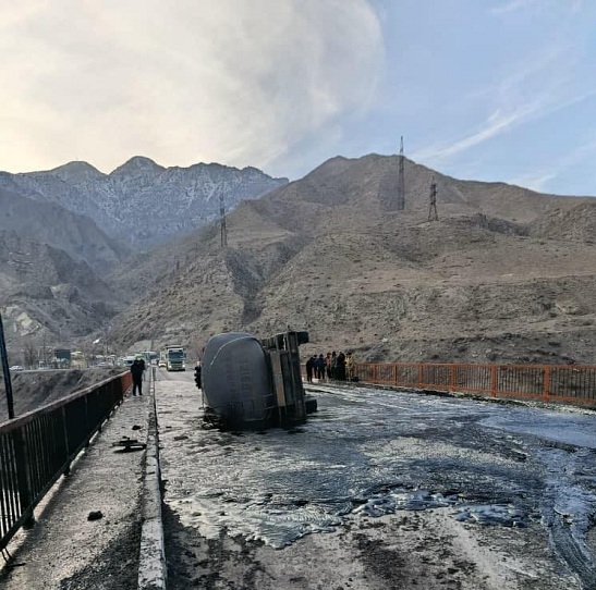 Бүгүн саат 09:50лөр чамасында Бишкек — Ош жолунда мазут ташыган бензовоз оодарылып кетти. Бул тууралуу «Кыргызавтожол-Түштүк» ишканасынан билдиришти.