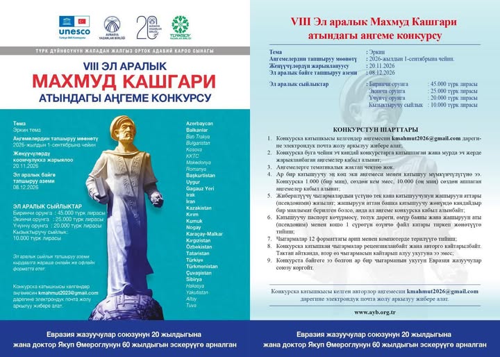 XIII эл аралык Махмуд Кашгари атындагы аңгемелер сынагына чыгармаларды кабыл алуу башталды. Бул тууралуу Жазуучулар союзунан билдиришти.