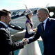Адылбек Касымалиевди Казакстандын премьер-министринин орун басары — жасалма интеллект жана санариптик өнүктүрүү министри Жаслан Мадиев жана башка расмий адамдар тосуп алышты.