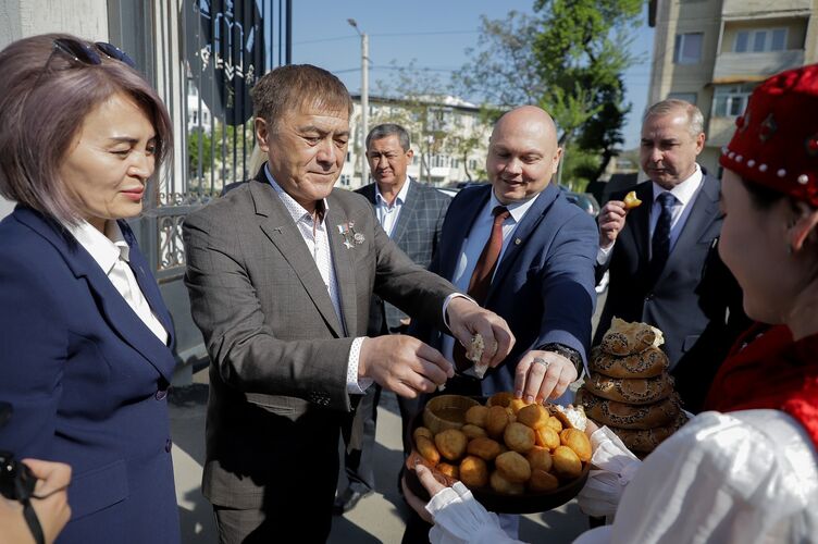 Ардактуу мейманды, дүйнөнүн 372-чи, Россиянын 88-чи, Кыргызстандын туңгуч космонавты Салижан Шариповду мэрдин орун басары Масуда Айдарбекова, Россиянын Ош шаарындагы башкы консулу Роман Свистин, билим берүү тармагынын өкүлдөрү жана окуучулар тосуп алышты.