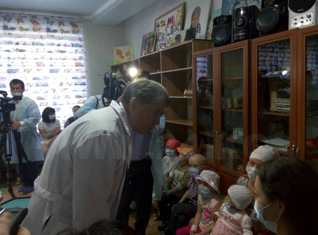«Ооруу менен күрөшүп, жеңиш керек. Бул күрөштө биз силерге жардам беребиз», — деди президент Алмазбек Атамбаев, онкогематология балдар бөлүмүндөгү бейтаптарга менен жолугушуу учурунда.