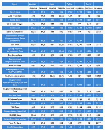 Валюталардын коммерциялык банктардагы наркы
