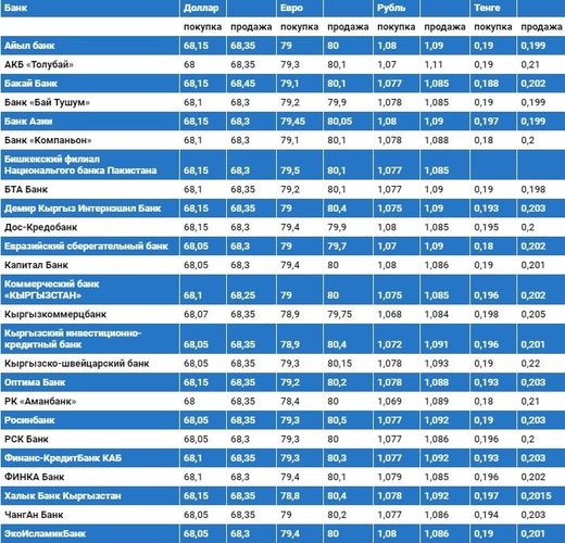 Валюталардын коммерциялык банктардагы бүгүнкү наркы