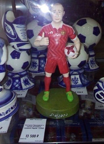 Болгону 13 миң 500 рублга «Президент топ менен» футболдук сувенирди сатып алууга болот. Орусиянын президенти Владимир Путинге окшош чакан фигуралардын сүрөттөрү социалдык түйүндөрдө жарыяланды.