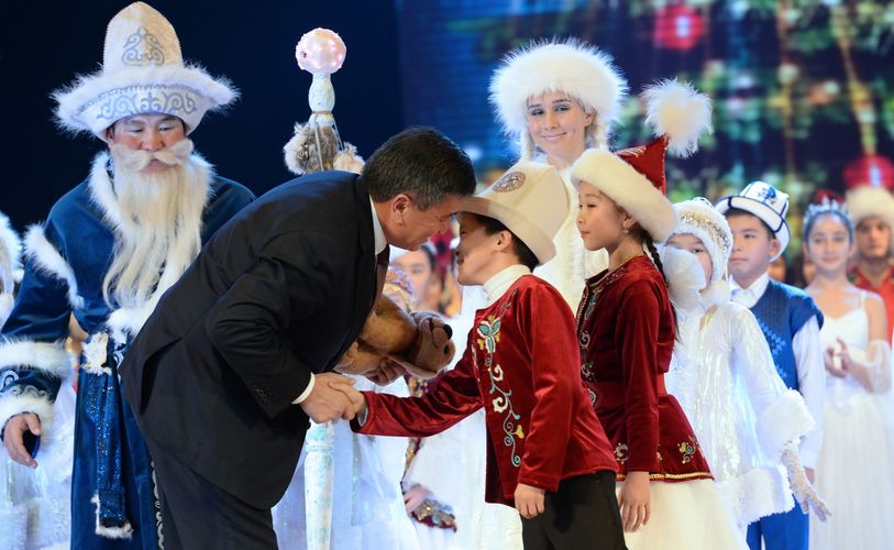 Фото пресс-службы президента. Аяз Ата на новогоднем представлении с участием президента КР. Декабрь 2017 года