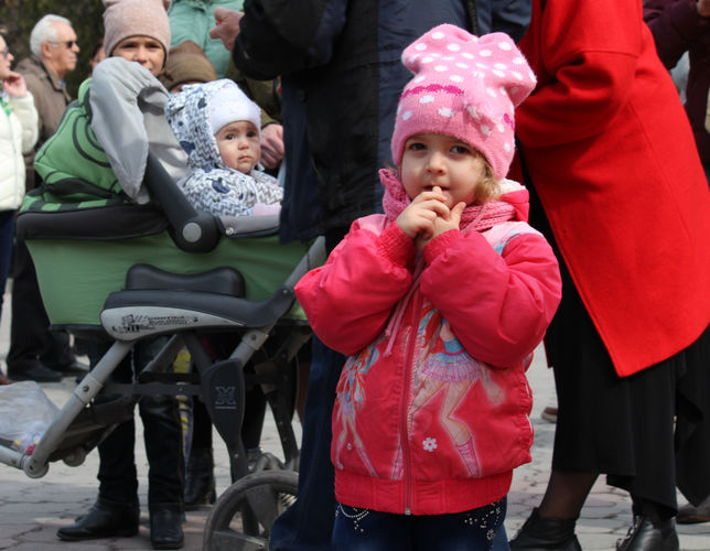 Блины, олицетворяющие солнце, раздавали тут же. Правда, тем, кто пришел не к началу, главный символ праздника не достался.